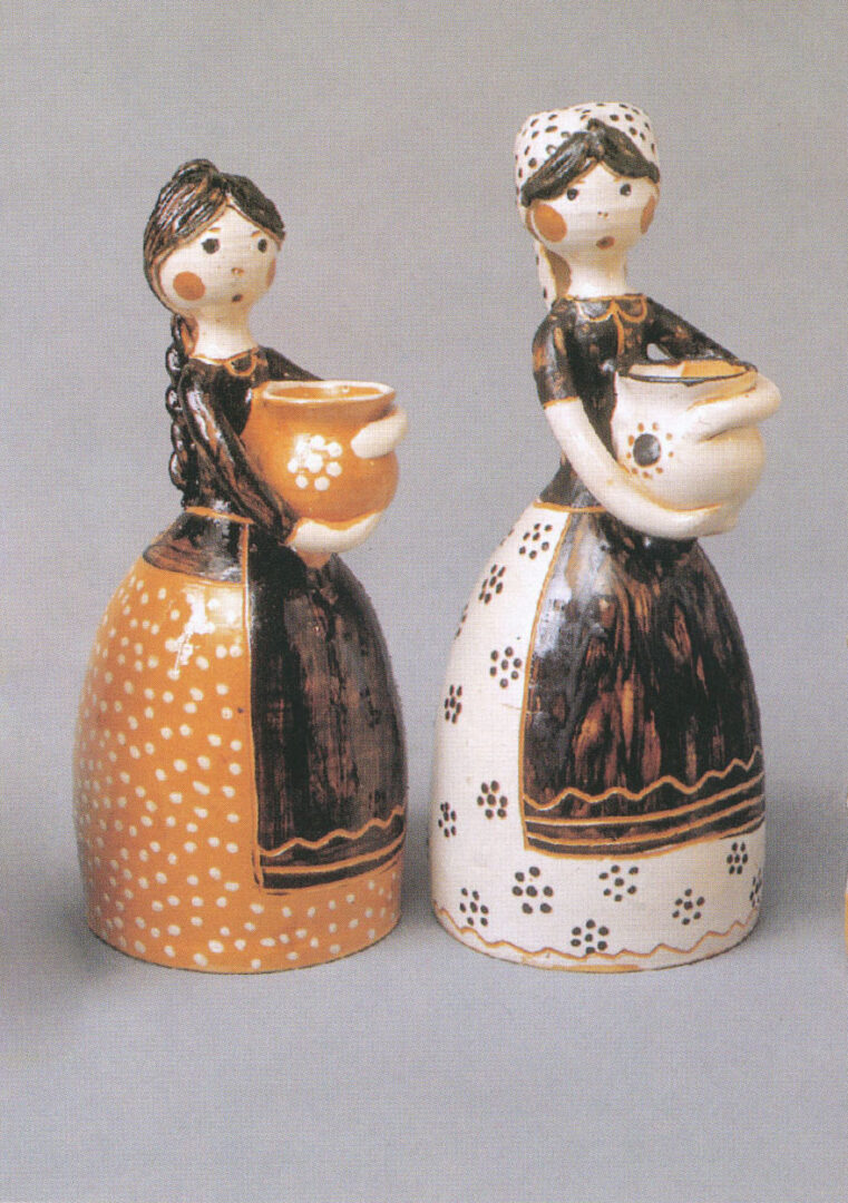 Ručne točený na elektrickom hrnčiarskom kruhu, detaily domodelované, ryté a maľované farebnými hlinkami, transparentná bezfarebná glazúra. Rôzne varianty.