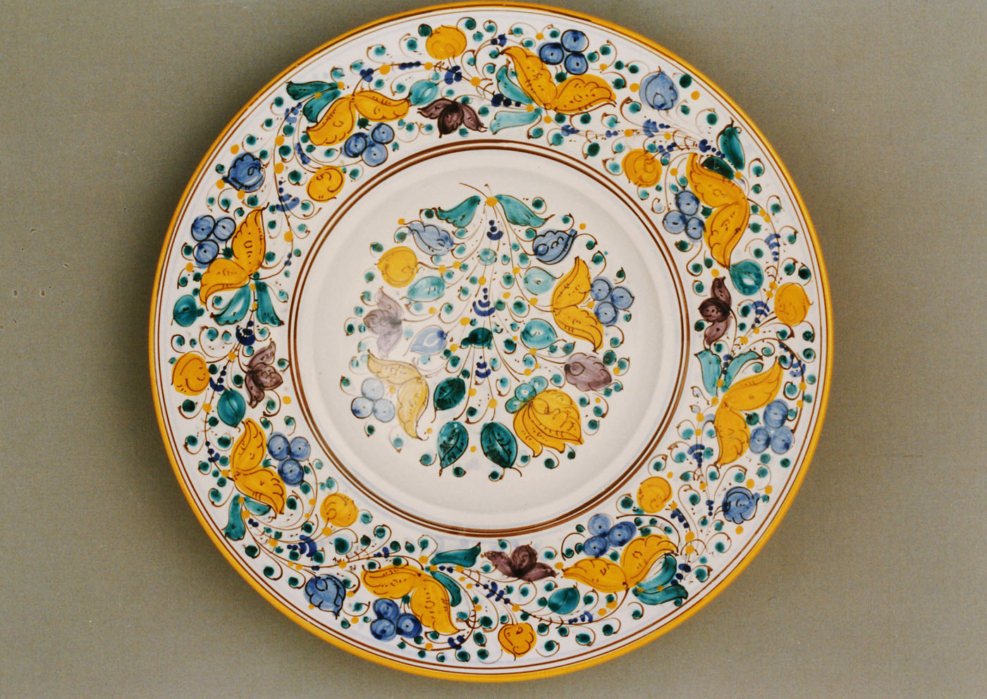 Točený na hrnčiarskom (môže byť aj na zatáčacom) kruhu, raz vypálený, poliaty bielou krycou cíničitou glazúrou, do ktorej je na dne a po okraji taniera maľovaný rastlinný farebný( jednofarebný) okontúrovaný bohatý dekor, znova vypálený v hrnčiarskej peci. Rôzne varianty dekorov.