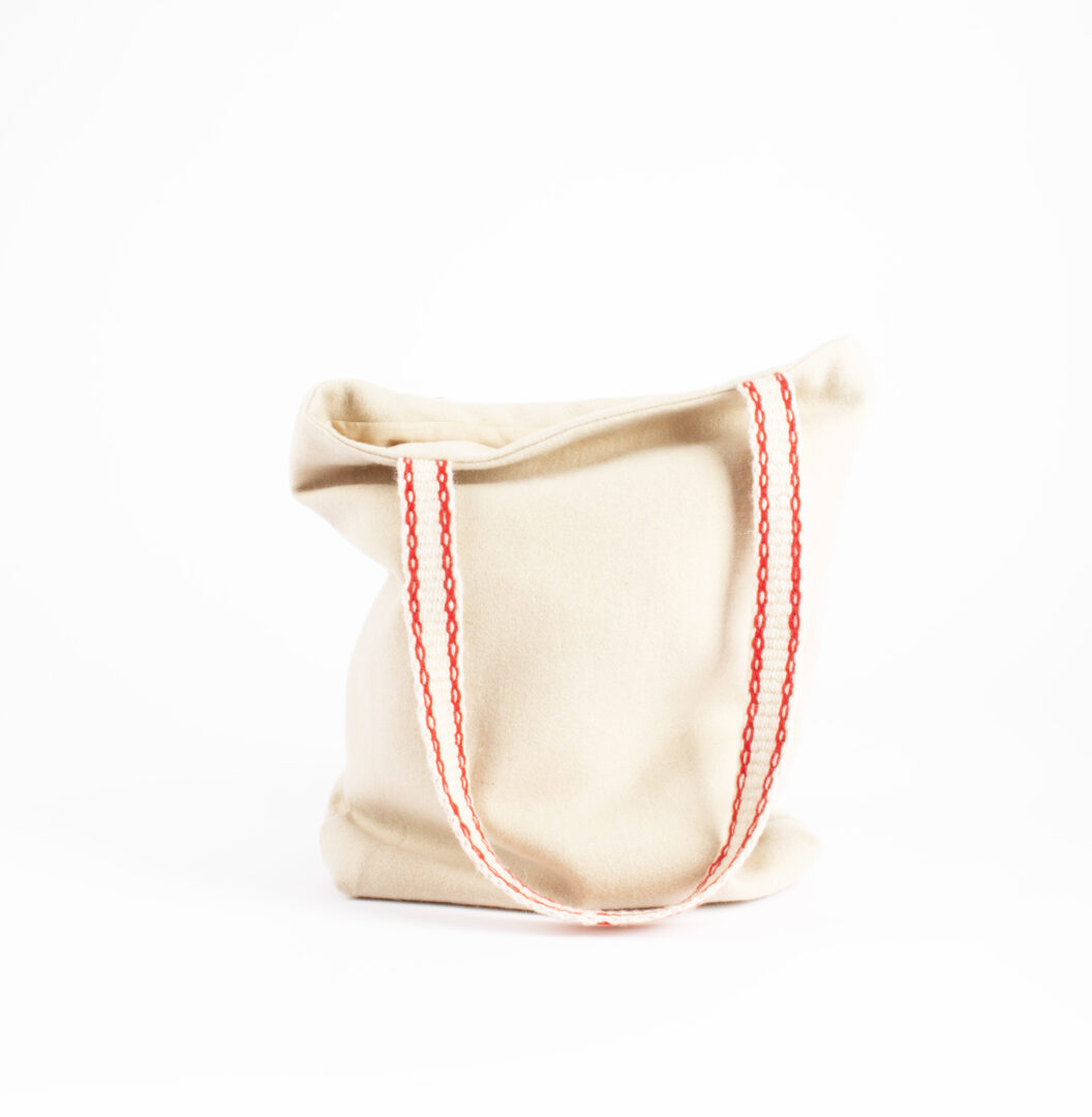 Model tašky je súčasťou kolekcie odevných doplnkov z prírodných materiálov. Základ je zhotovený z vlneného súkna s ručne zhotovenou tkanicou z vlnených priadzí. Tkanica vytvára na taške farebný akcent a zároveň plní funkciu ramienka. Vnútro tašky je podšité ľanovým plátnom a jeho súčasťou je vnútorné vrecko.