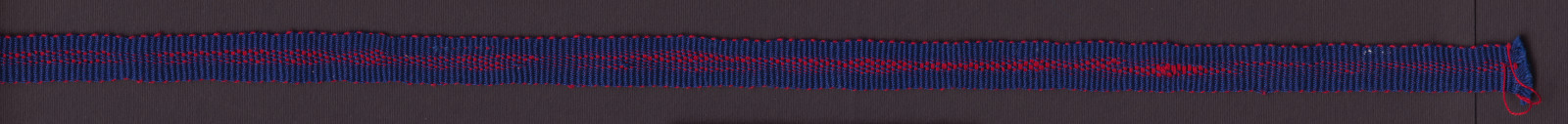 Tkanica tkaná na doštičke v modro-červenej farbe. Tkaná je ripsovou väzbou, v strednej časti je väzba voľnejšia a vytvára nepravidelný farebný vzor. Tkanicami sa zdobili rukávce, našívali sa na sukne, na zástery, na rubáše, stanky a mužské košele. Pre svoju pevnosť sa používali tiež v hospodárstve na uväzovanie vriec, ako traky a podobne.