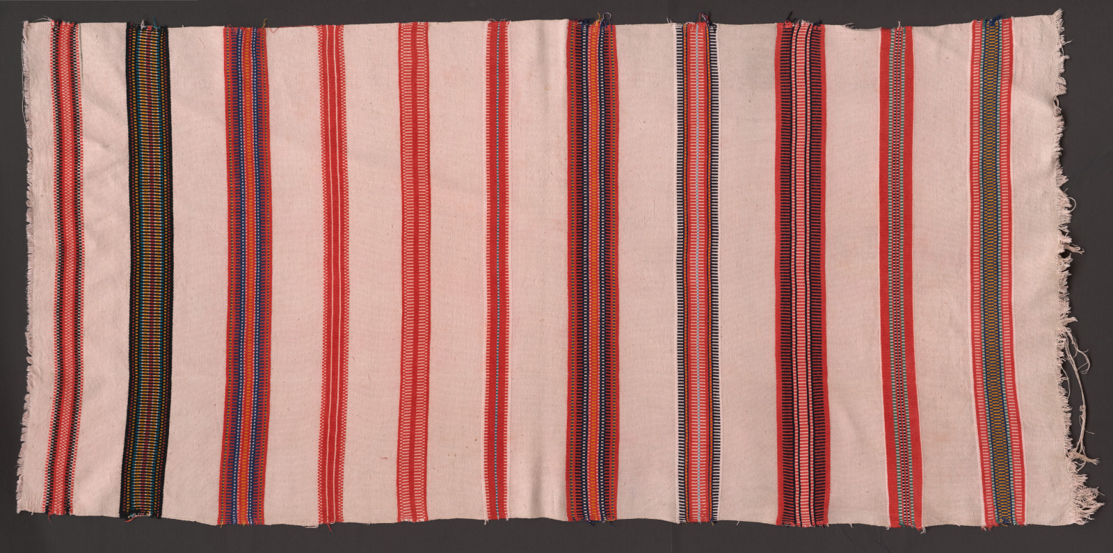 Vzorník so ždiarskými motívmi tkanými ripsovou väzbou. Pásy sú tkané v rôznej šírke a v rôznej kombinácií farieb.