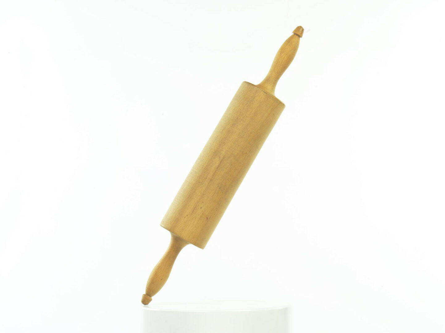Drevený valček (váľok) na cesto, sústružený so zdobne profilovanými úchytkami.