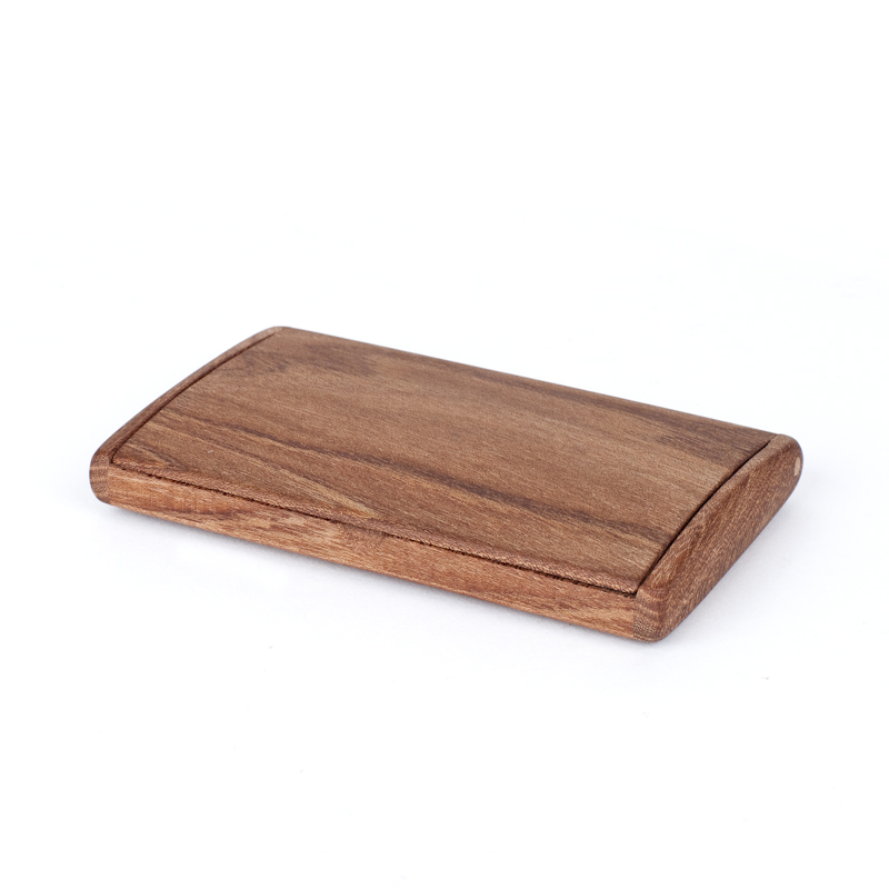 Drevený vizitkár je podlhovastého tvaru jemne zaoblený v prírodnom prevedení.