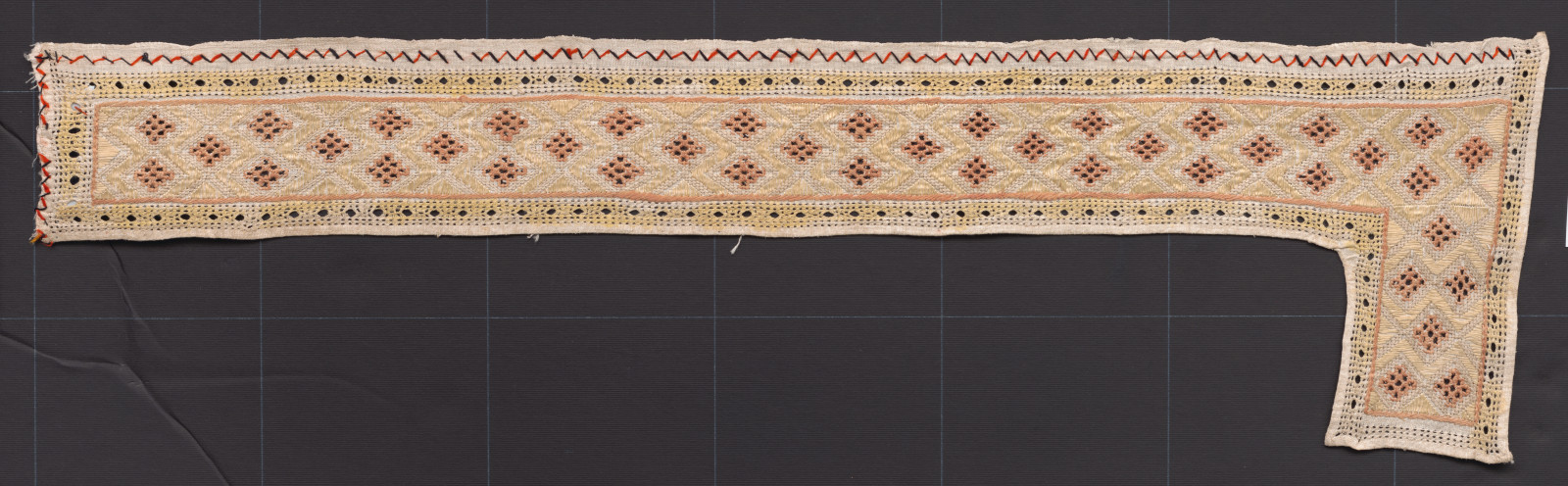 výšivka z dlhej šatky: dĺžka = 67.0 cm výšivka: šírka = 19.0 cm