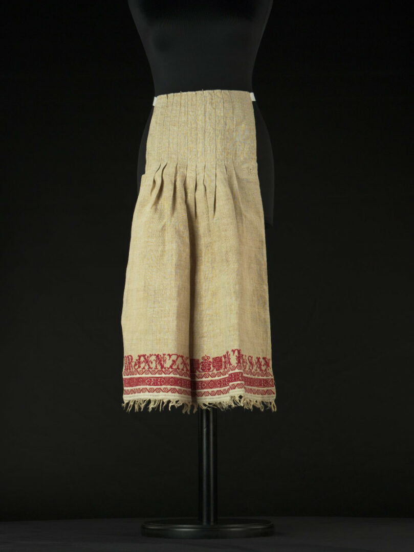 Zástera je zhotovená z jednej šírky domáceho konopného plátna. Na dolnej časti je umiestnená výšivka, krížiková s hladkovaním. Do výšivky je zakomponované meno majiteľky (BRINZA KATUSA). Okraj ukončujú dva rady mešterky a strapce. Horná časť je zúžená ušitými záhybmi. Zástera nemá viazačky. Bola používaná ako pracovná zástera.