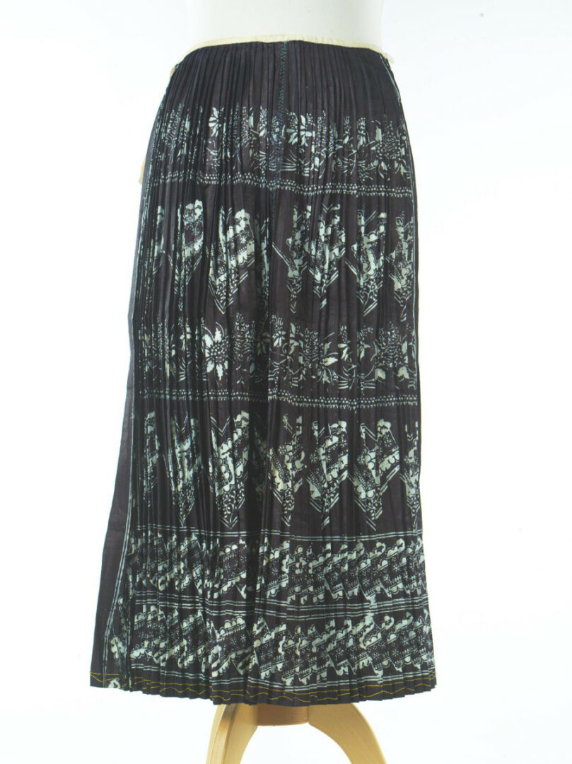 Zástera je ušitá z dvoch pôl modrotlače, ktoré sú zošité spojovacím švíkom. Naskladaná je do záhybov a v páse je všitá do úzkeho obalka z bieleho plátna. Dolný okraj je zahnutý a preštepovaný strojom bielou niťou a žltou perlovkou. Dala sa nosiť na obidve strany. Zástera tlačená u Roštára v Slovenskej Lupči.