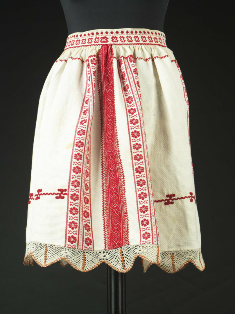 Zástera vznikla zošitím dvoch uterákov, ktoré čičmianski podomoví obchodníci kupovali vo Viedni. Dva uteráky sú zošité pomocou továrenskej tkanice. Uteráky sú z bavlnenej tkaniny, po okraji majú vytkaný vzor. Na zástere je výšivka plným a stonkovým stehom. Horná časť zošitých uterákov je prišitá k pásu plátna, ktorý je nariasený a vyšitý, tvorí pás zástery. Zástera je dookola lemovaná starohorskou paličkovanou čipkou.