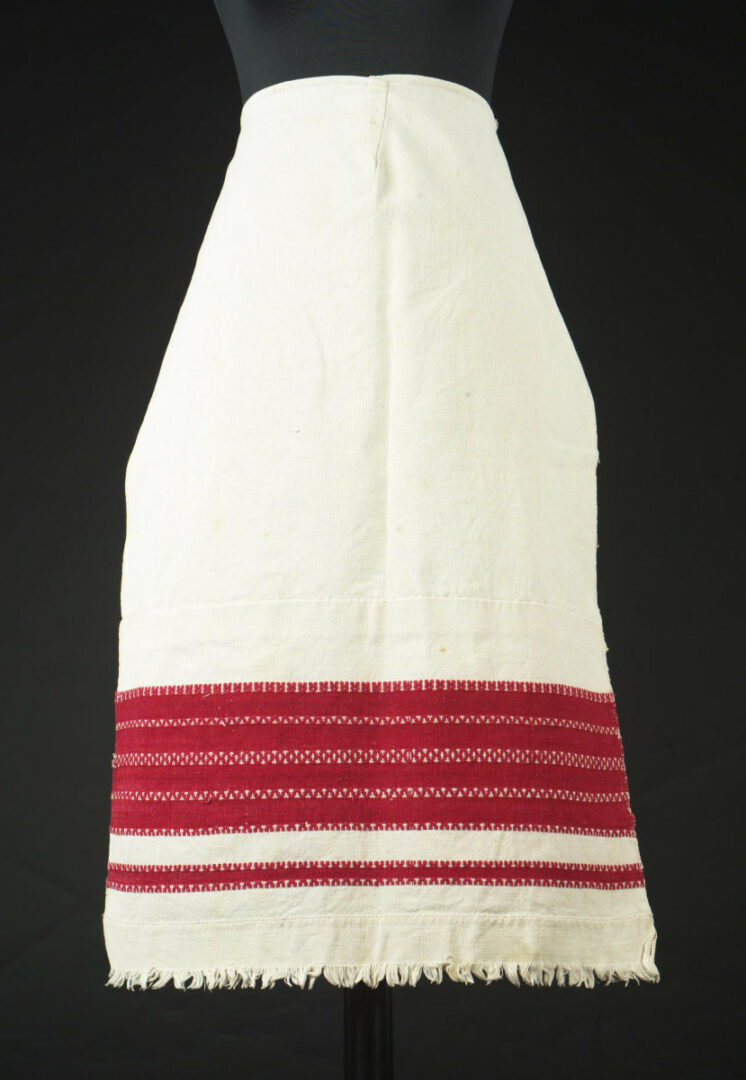 Zástera je z jednej šírky domáceho bavlneného plátna. Na dolnej časti má pásy vytkané ripsovou väzbou, medzi ktorými sú pásy jednoduchého preberaného vzoru. Samotný dolný okraj je zdvojený našitým pásom plátna, vystrapkaný okraj je bohatší. Na hornej časti zástery je ušitý záševok a k zástere sú prišité viazačky, biele.