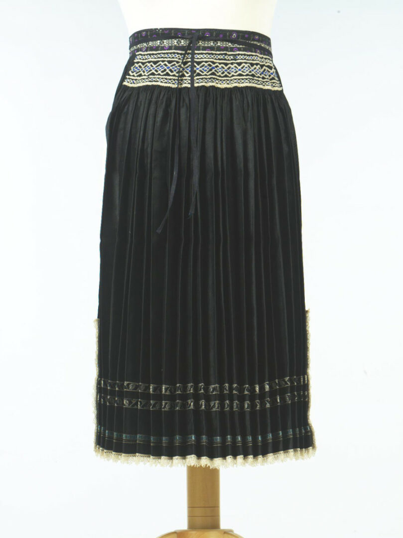 Zástera je ušitá z jednej poly bavlneného glotu. Horná časť je nariasená a riasenie je spevnené výšivkou, ktorá je šitá vlnou. Na dolnom okraji sú našité vzorované továrenské tkanice. Obalok zástery je zo vzorovaného kartúnu. Dolný okraj a čiastočne aj bočné strany lemuje úmelohodvábna továrenska čipka.