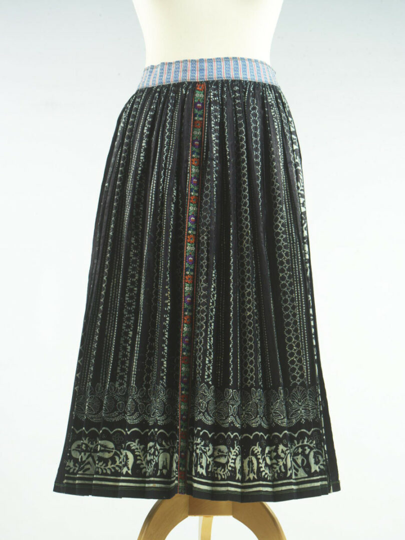 Zástera je zhotovená z dvoch pôl modrotlače natlačenej na továrenskom plátne. Modrotlač má na rubovej strane iný vzor ako na líci, takže sa zástera mohla používať obojstranne. Zošitie dvoch pôl je na druhej strane zakryté našitou kvetovanou stuhou. Horná časť zástery je nariasená a všitá do kartúnového obalka. K obalku sú prišité cigánske tkanice na uväzovanie zástery.
