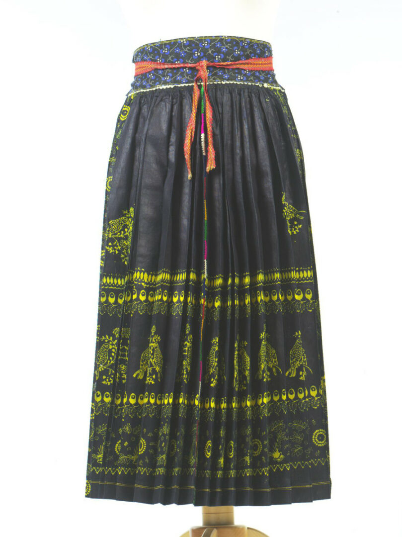 Zástera je z dvoch pôl modrotlače, ktoré sú zošité spojovacím švíkom. Použitá je hodvábna priadza. Natlačený vzor je na oboch stranách ten istý, zástera je obojstranná. V páse je nariasená. Vo švíku je vložená harasová hadovka. K obalku sú prišité harasové tkanicae na uväzovanie. Zástera je ušitá strojom.
