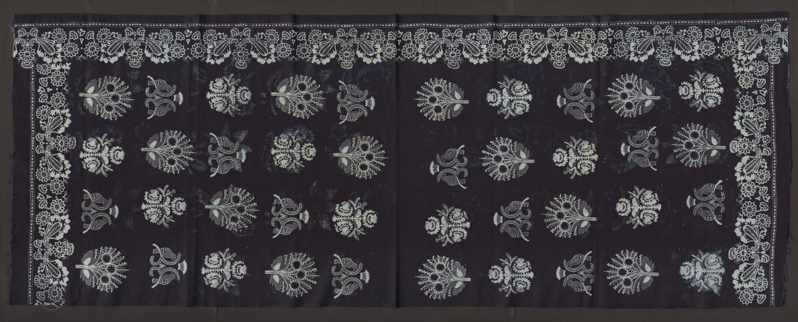 Pás továrenského plátna s natlačeným modrotlačovým vzorom bol určený na ušitie zástery. Z troch strán je natlačená bordúra, vnútri je kvetinový vzor, z druhej strany aj z vtákmi. Pás modrotlače je určený na obojstrannú zásteru. Zástera bola pravdepodobne určená pre Liptovskú Lúžnu.