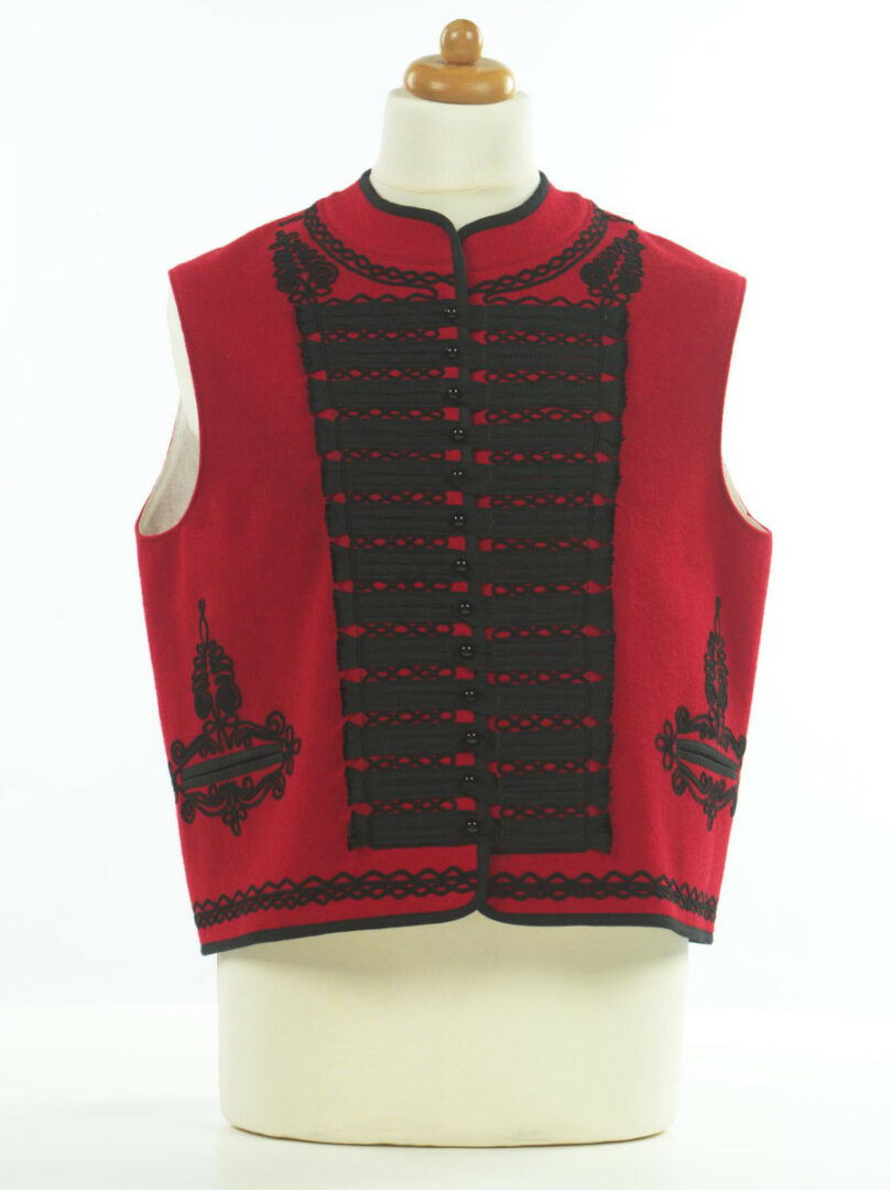 Mužský lajblík je ušitý z továrenského súkna, podšitý je bavlneným plátnom. Ozdobený je naaplikovaným šujtášom a tkanicou. Šnurovanie z čierneho šujtáša vytvára charakteristický ornament. Lajblík sa nosil v Čiernom nad Topľou. Ušitý bol do predajní ÚĽUV-u PLUS.