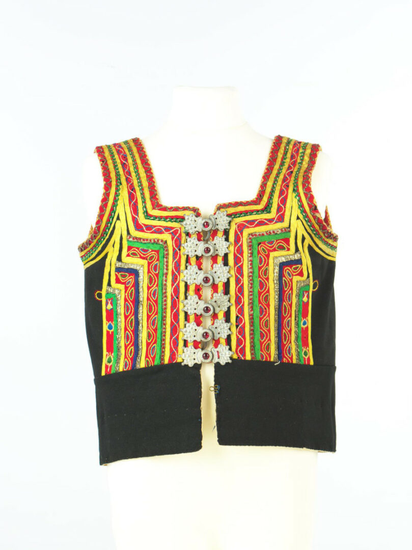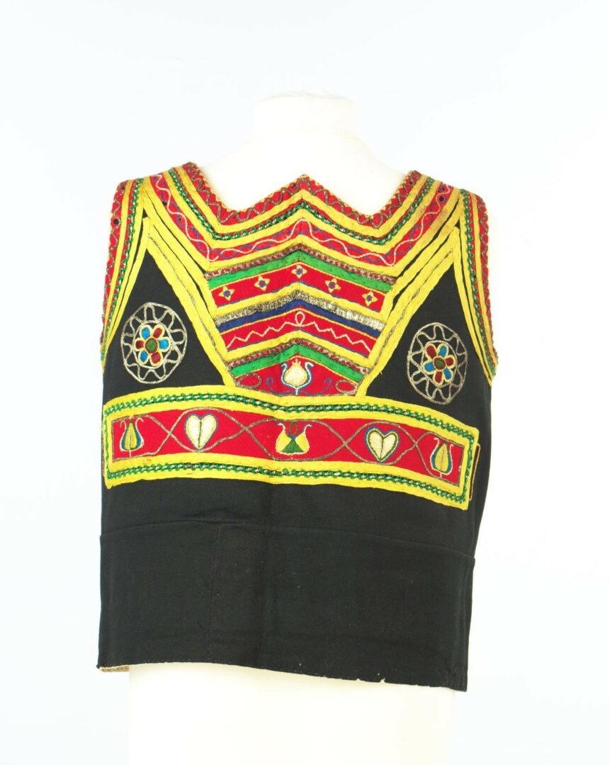 Živôtik je z továrenského súkna, podšitý je domácim plátnom, dolná časť továrenským. Olemovaný je červeným súknom. Na živôtiku je nášivka rôznych materiálov: červené súkno, rôzne šnúry, šujtáš. Na súkne je výšivka retiazkovým a plným stehom. Šitá je farebným hodvábom. Živôtik sa zapína na cínové spinky so skleneným očkom.