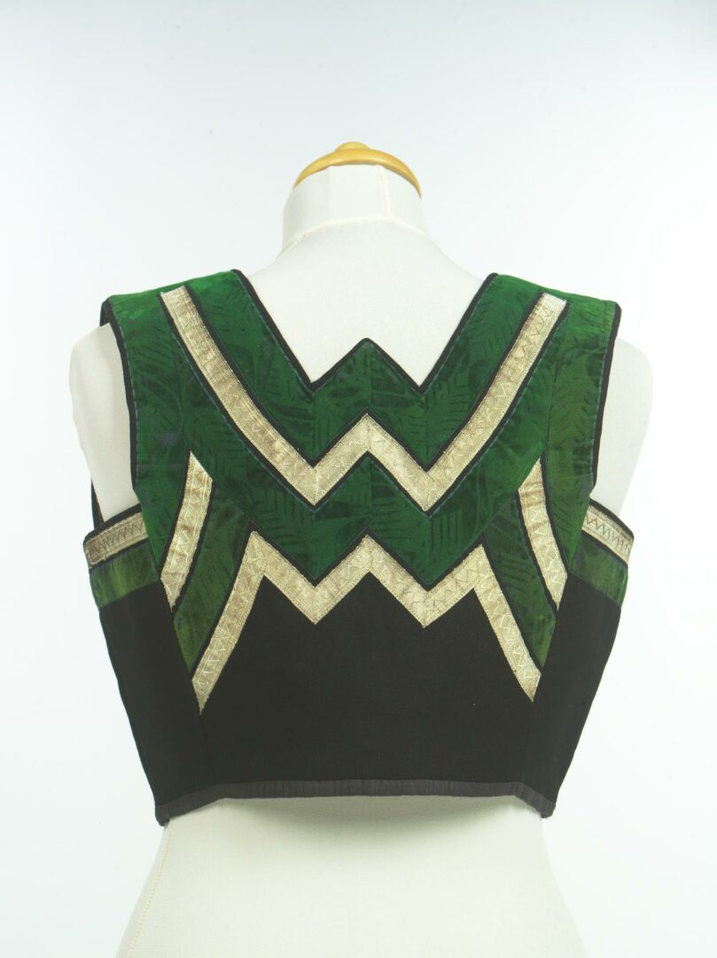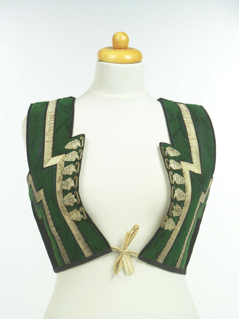 Živôtik z továrenského súkna je podšitý domácim konopným plátnom. Na živôtiku sú našité zelené zamatové stuhy so vzorom a žakárové stuhy striebornej farby. Na okraji predných dielov sú našité ozdobné cínové háčiky, cez ktoré sa navliekala šnurovačka. Dolný okraj je olemovaný pásikom farbiarského plátna.