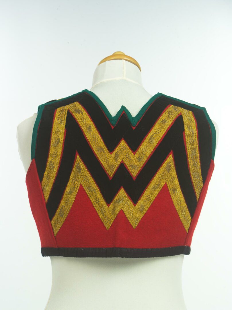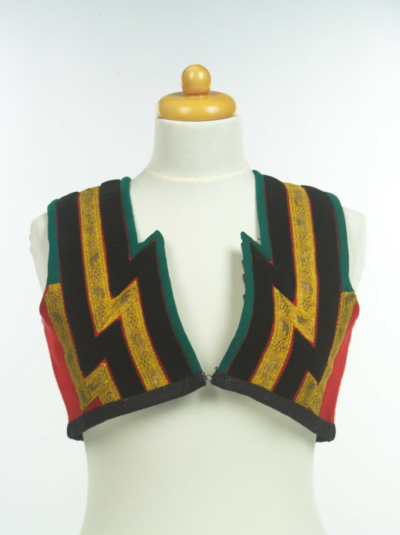 Živôtik z továrenského súkna je podšitý domácim konopným plátnom. Dolný okraj je olemovaný modrotlačou, ostatné okraje lemuje vlnená šatovka. Na živôtiku sú našité zamatové a žakárové stuhy. Na okrajoch predných dielov živôtika sú z rubovej strany našité veľké kovové háčiky, cez ktoré sa živôtik šnuroval.